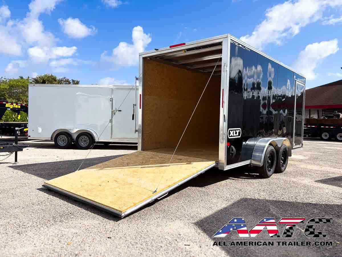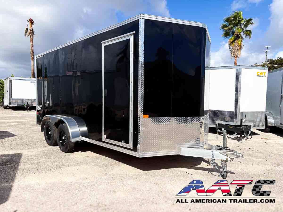 C7X16STA2-BLK-R-610-XLT ALCOM Aluminum 7×16 Tandem Axle Ramp Door Cargo Trailer XLT Pro Series